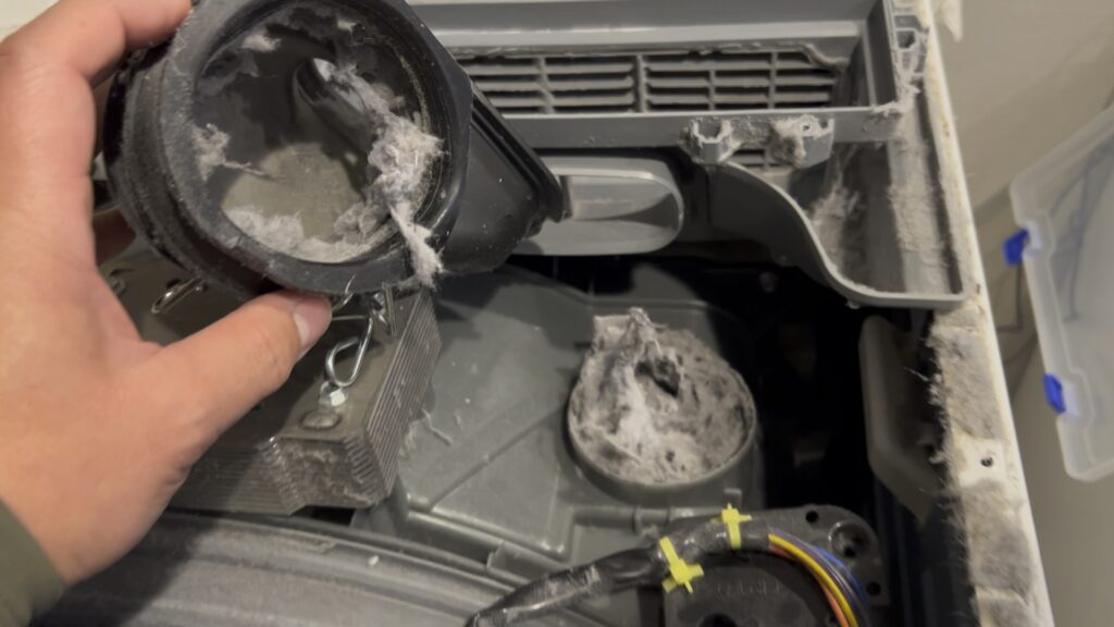 1. 【乾燥機能低下の元凶】排気ダクトとヒートポンプの「綿ボコリ」