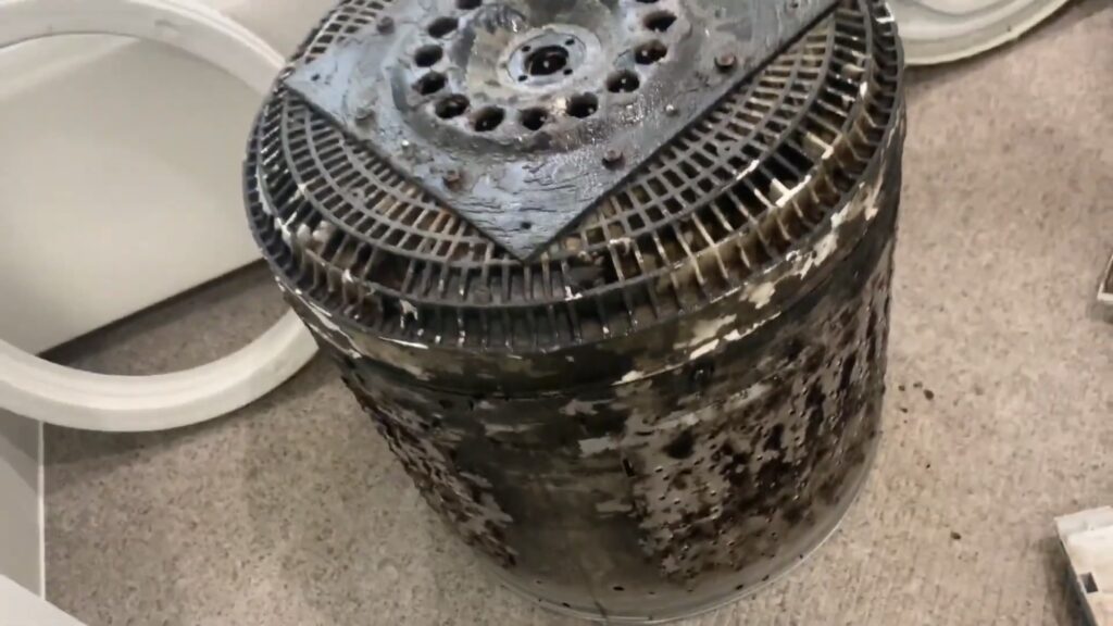 真っ黒のカビの塊になったステンレス槽、これで洗濯していると思うと恐ろしいですよね。