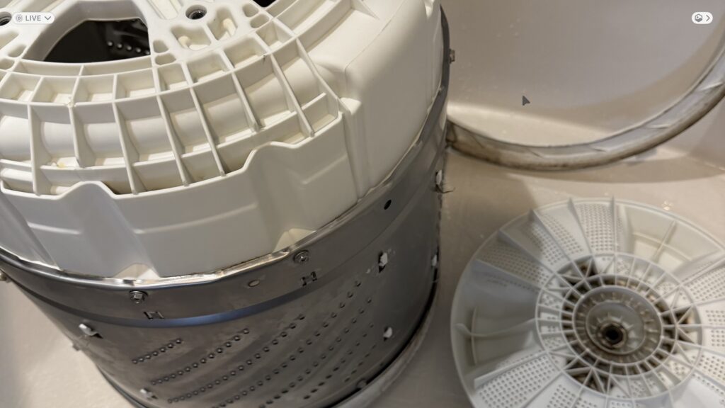 黒いカス汚れが止まらな!って事でご依頼頂く中で、実際に分解をしてみると洗濯槽内部は全く汚れがなく綺麗な状態って事があります。