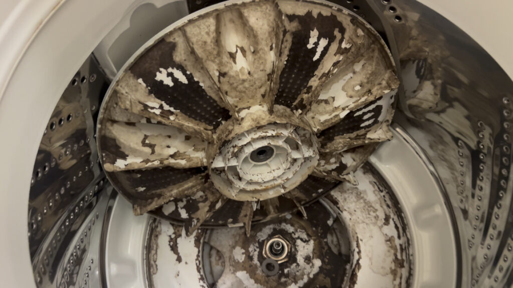 その際に裏側にあるカビ汚れが水流で剥がれ、衣類と共に水中で回り続けるという恐ろしい光景が繰り広げられているのです。